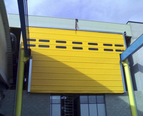 La puerta rápida industrial plegable Pack para Puentes Grúa está diseñada para satisfacer las necesidades de los entornos industriales que trabajan con infraestructuras para puente grúa, ya sea para mover materiales del interior al exterior o viceversa. En concreto, se trata de una puerta de lona que permite la salida de la grúa fuera del cobertizo.