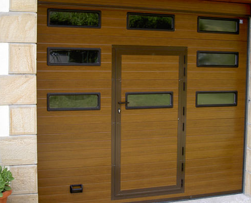 Cualquiera de las puertas residenciales ofrecidas por Mercadock, se plantea observando los colores dominantes en el cierre perimetral y en el edificio, de esta forma, ofrecemos al cliente la posibilidad de conjugar los colores y dibujos de los paneles para quedar integrado en el conjunto residencial.