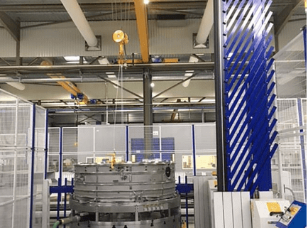 En la fotografía adjunta, se instaló una barrera Avantgate como cierre de seguridad ya que al utilizar el puente grúa para mover las piezas, era imposible conseguir este cierre con otro tipo de barrera o puerta en ese espacio.