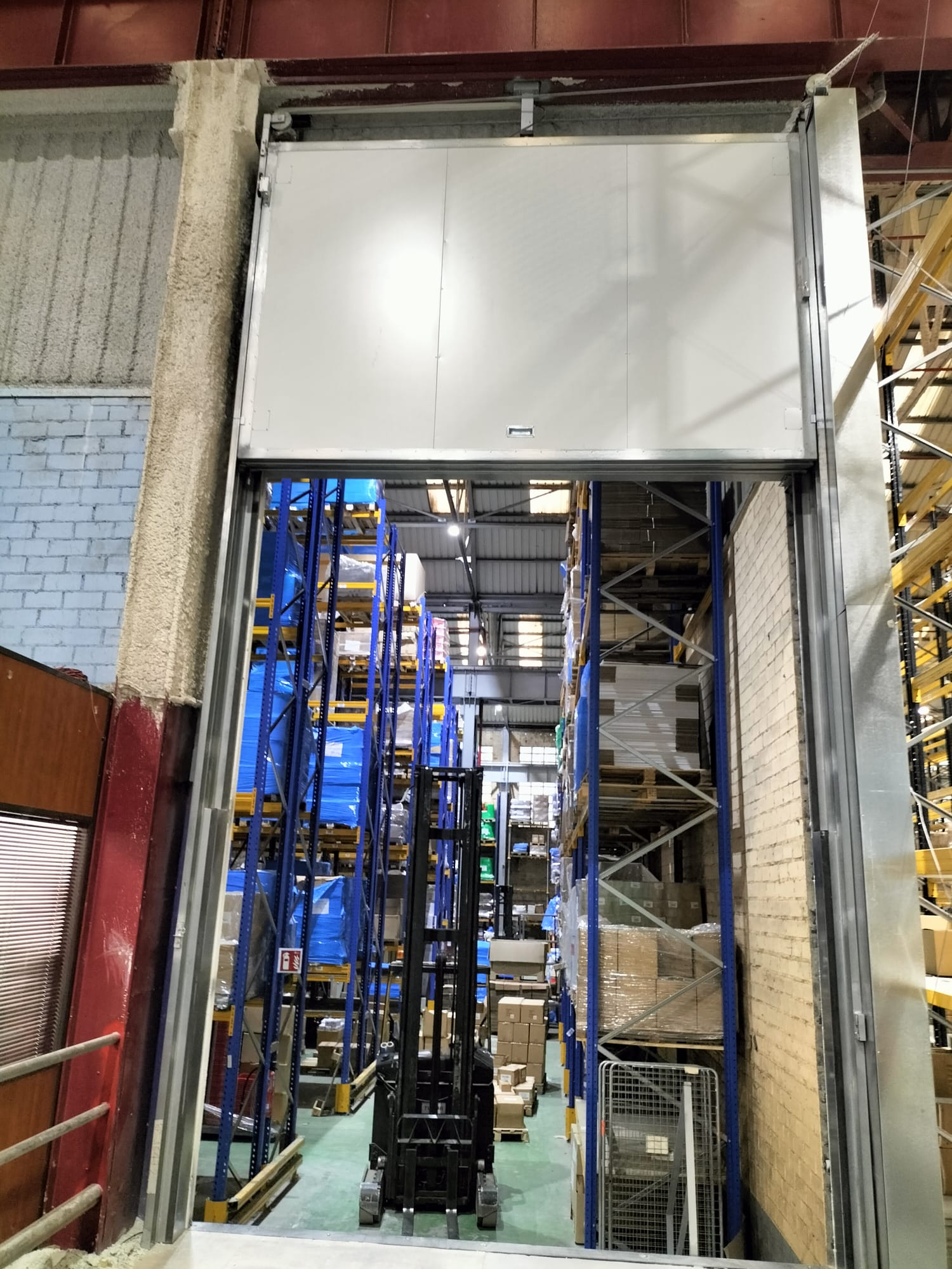 Este modelo de puerta cortafuegos de guillotina ha demostrado su alta fiabilidad gracias a un sistema de detección de incendios que, mediante una señal, acciona el dispositivo y cierra la puerta inmediatamente.